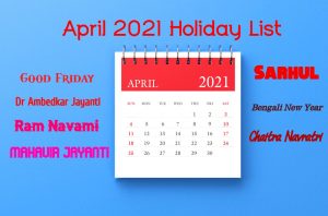 Holiday List April 2021 : अप्रैल में होगी छुट्टियों की बौछार, 21 को रामनवमी, झारखंड में 15 अप्रैल को मनाया जाएगा सरहुल