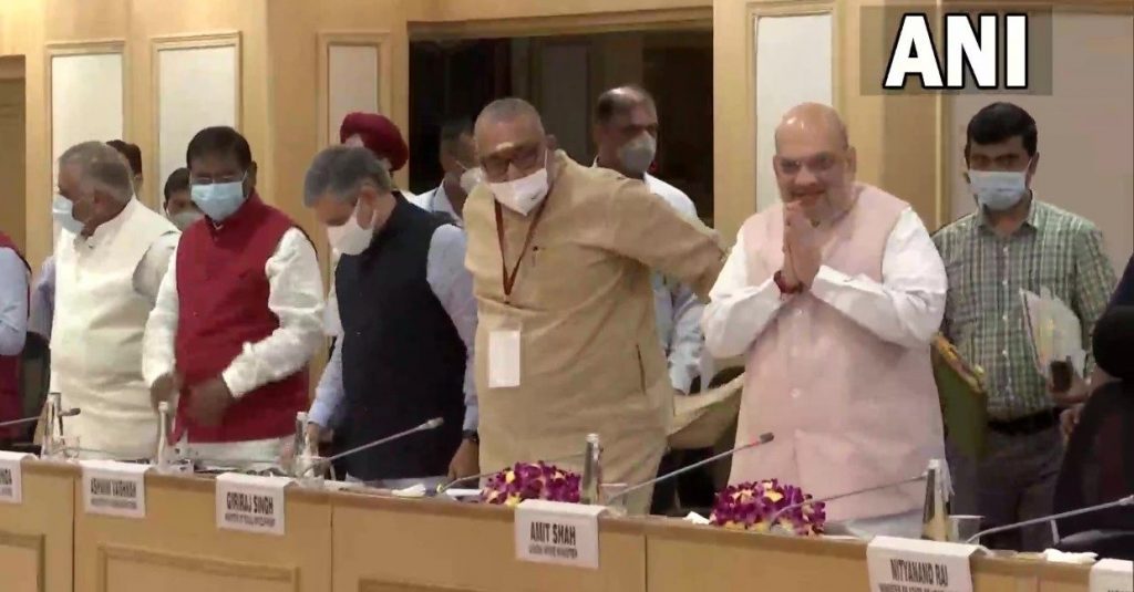 Delhi | Union Home Minister Amit Shah arrives for a review meeting on 'Left-Wing Extremism'. Maharashtra CM Uddhav Thackeray, Bihar CM Nitish Kumar, Odisha CM Naveen Patnaik, Madhya Pradesh CM Shivraj Singh Chouhan among others present, at Vigyan Bhawan pic.twitter.com/c2I3XsXBOx