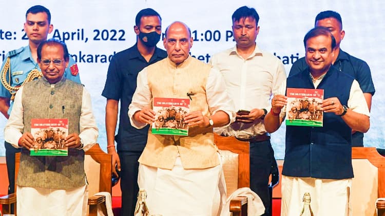 गुवाहाटी: रक्षा मंत्री राजनाथ सिंह (Rajnath Singh) ने परोक्ष रूप से पाकिस्तान को चेतावनी दी है. रक्षा मंत्री ने शनिवार को कहा कि भारत सीमा पार से देश को निशाना बनाने वाले आतंकवादियों (Terrorists) के खिलाफ कार्रवाई करने से नहीं हिचकिचायेगा. रक्षा मंत्री यहां एक कार्यक्रम में बोल रहे थे, जिसमें 1971 के बांग्लादेश मुक्ति संग्राम (Bangladesh Mukti Sangram) में शामिल रहे असम के सैनिकों को सम्मानित किया गया.