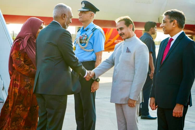 India Maldives Relations: मालदीव के राष्ट्रपति मोहम्मद मुइज्जू अपनी पत्नी के साथ पांच दिनों की यात्रा पर रविवार को भारत पहुंचे. जिसका उद्देश्य पिछले साल नवंबर से तनाव में चल रहे रिश्तों को फिर से संवारना है. मालदीव के राष्ट्रपति ने जून में प्रधानमंत्री नरेंद्र मोदी के शपथ ग्रहण समारोह में हिस्सा लिया था, लेकिन यह उनकी पहली द्विपक्षीय भारत यात्रा है. विदेश मंत्रालय के आधिकारिक प्रवक्ता रणधीर जायसवाल ने ट्वीट किया, मालदीव के राष्ट्रपति मोहम्मद मुइज्जू का भारत की राजकीय यात्रा पर नई दिल्ली पहुंचने पर हार्दिक स्वागत किया गया. हवाई अड्डे पर विदेश राज्य मंत्री केवी सिंह ने उनका स्वागत किया. यह यात्रा भारत-मालदीव के बीच लंबे समय से चली आ रही व्यापक द्विपक्षीय साझेदारी को और बढ़ावा देगी.