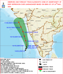 चक्रवाती तूफान पिछले छह घंटों में लक्षद्वीप क्षेत्र केंद्रित था और वह 19 किमी प्रति घंटे की गति के साथ उत्तर-उत्तर-पूर्व की ओर बढ़ गया. इसके साथ ही यह डीप डिप्रेशन में बदल गया है. अभी यह चक्रवाती दक्षिण-पूर्व और पूर्व-मध्य अरब सागर में केंद्रित है.