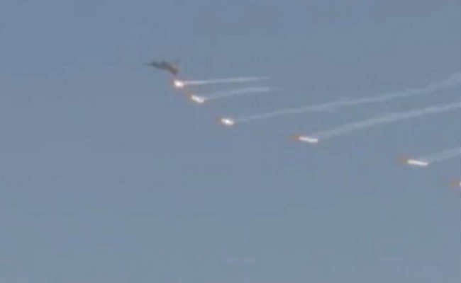 #WATCH Hindon Air Base (Ghaziabad): Flares fired by a fighter aircraft today during rehearsal of the Air Force Day parade to be held on October 8. pic.twitter.com/mEfK3cD08z