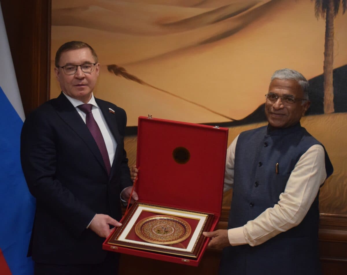 रशियन फेडरेशन की फेडरल असेंबली की फेडरेशन काउंसिल के फर्स्ट डेप्युटी स्पीकर व्लादिमीर याकुशेव के नेतृत्व में भारत यात्रा पर आए रूस के संसदीय शिष्टमंडल ने लोकसभा अध्यक्ष ओम बिरला और राज्यसभा के उपसभापति हरिवंश से संसद भवन में मुलाकात की. इस दौरान दोनों देशों के बीच सांस्कृतिक, आर्थिक और सामरिक संबंधों को और अधिक मजबूत बनाने पर चर्चा की गयी.