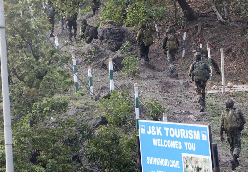 Reasi: Army personnel during a search operation after a bus carrying pilgrims was ambushed by terrorists, in Reasi district of Jammu and Kashmir
