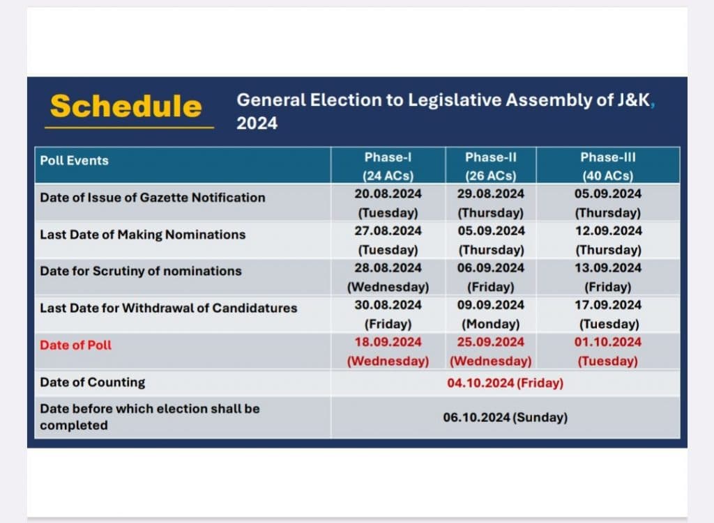 Jammu-Kashmir Election 2024: जम्मू-कश्मीर में 3 चरणों में चुनाव, 4 अक्टूबर को मतगणना