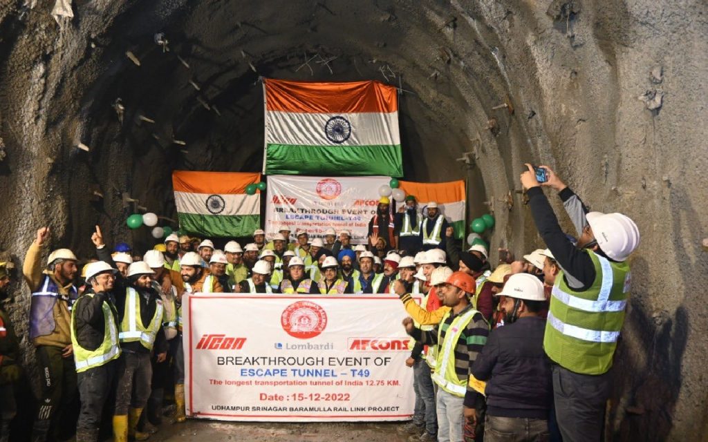 जम्मू कश्मीर में 111 किलोमीटर लंबे निर्माणाधीन बनिहाल-कटरा रेल लाइन में 12.89 किलोमीटर लंबी सुरंग बनाने का काम बृहस्पतिवार पूरा हो गया है. यह भारत की सबसे बड़ी ‘एस्केप’ सुरंग है.