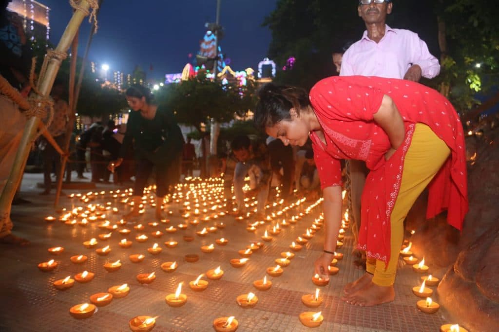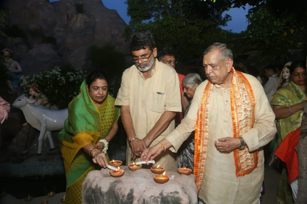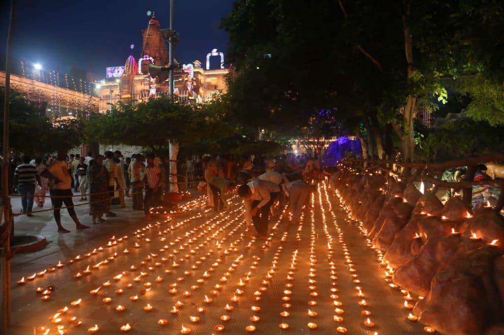 Janmashtami: 5251 दीपों से जन्माष्टमी महोत्सव की शुरुआत हुई. ठाकुर जी को अर्पित किया गया सोम चंद्रिका पोशाक. 5251 गाय के घी के दीपों को परिसर में स्थित श्रीगिरिराज महाराज के श्रीविग्रह को अर्पित किया गया.