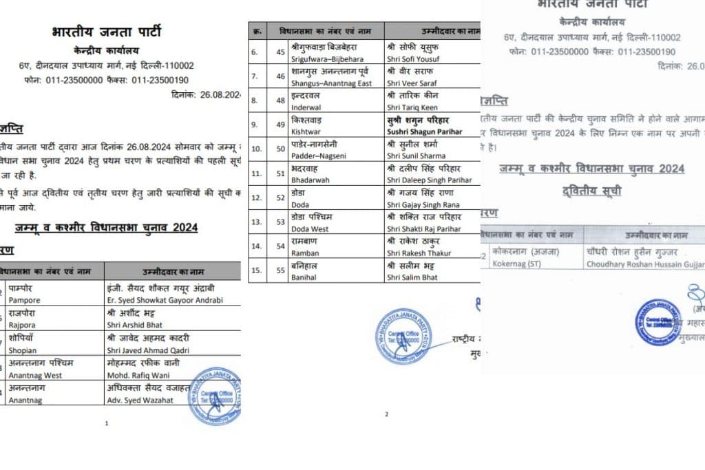 J&K Assembly Elections: बीजेपी ने एक ही दिन में उम्मीदवारों की दो सूची जारी की, देखें लिस्ट