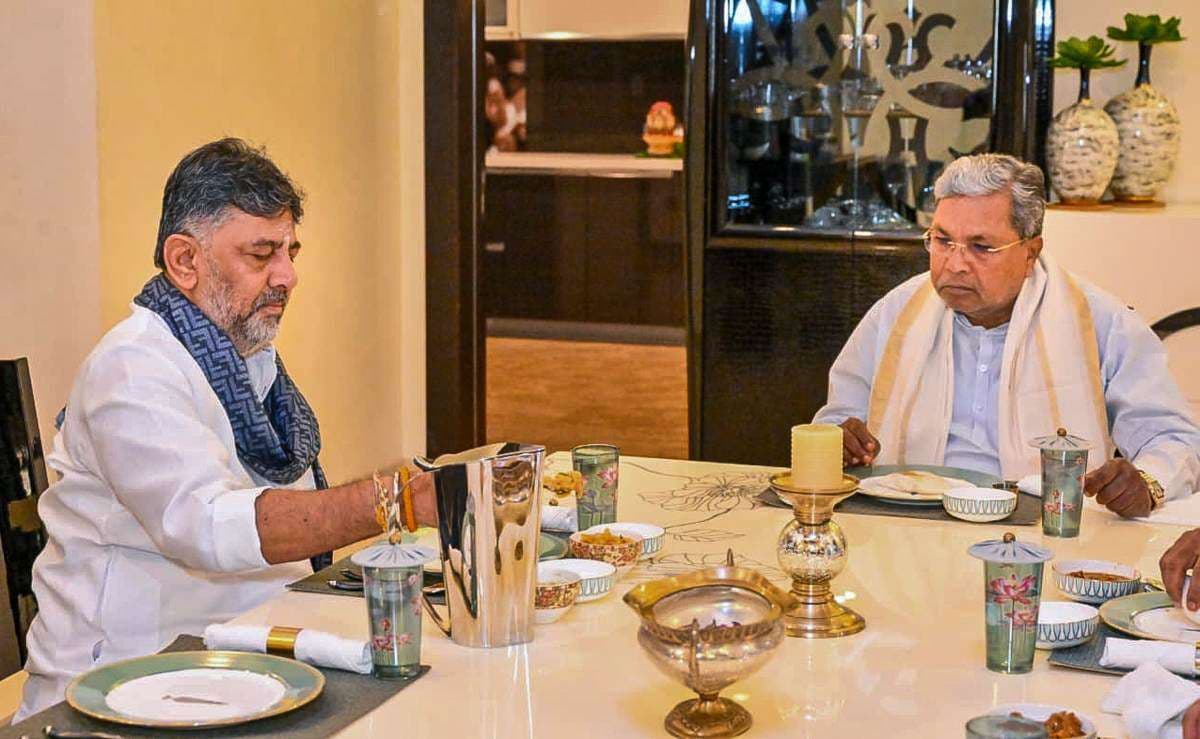 कर्नाटक के मुख्यमंत्री सिद्धरमैया ने अपनी सरकार में एकता का प्रदर्शन करते हुए मंगलवार को उपमुख्यमंत्री डीके शिवकुमार के आवास पर नाश्ता किया. इसकी तस्वीर भी सामने आई है. यह मुलाकात ऐसे समय में हुई, जब राज्य के मुख्यमंत्री पद के लिए दोनों में तनातनी की अटकलों के बीच कुछ दिन पहले ही उन्होंने एक साथ भोजन किया था.