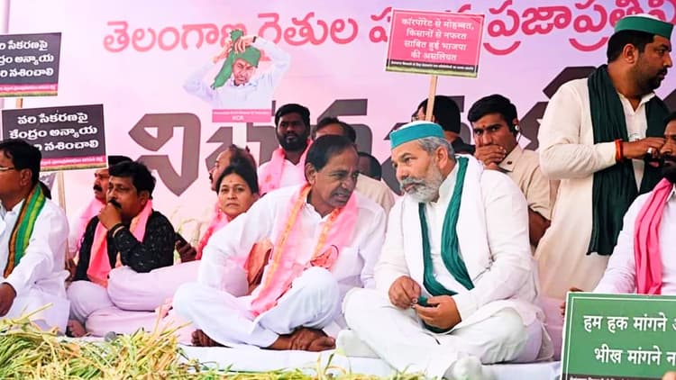 टीआरएस के सांसदों और विधायकों के साथ अन्य चुने हुए जनप्रतिनिधि दिल्ली में धरना दे रहे हैं. उनका आरोप है कि केंद्र सरकार की धान खरीद नीति में तेलंगाना के किसानों के साथ भेदभाव हो रहा है. इस धरना-प्रदर्शन को संबोधित करते हुए केसीआर ने कहा कि मैं प्रधानमंत्री नरेंद्र मोदी और पीयूष गोयल से आग्रह करता हूं कि पूरे देश की तरह तेलंगाना के किसानों से भी कृषि उत्पाद की खरीद की जाये. कृपया हमारे खाद्यान्न की भी खरीद की जाये.