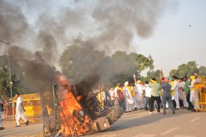 #WATCH: Punjab Youth Congress workers stage a protest against the farm laws near India Gate in Delhi. A tractor was also set ablaze. pic.twitter.com/iA5z6WLGXR