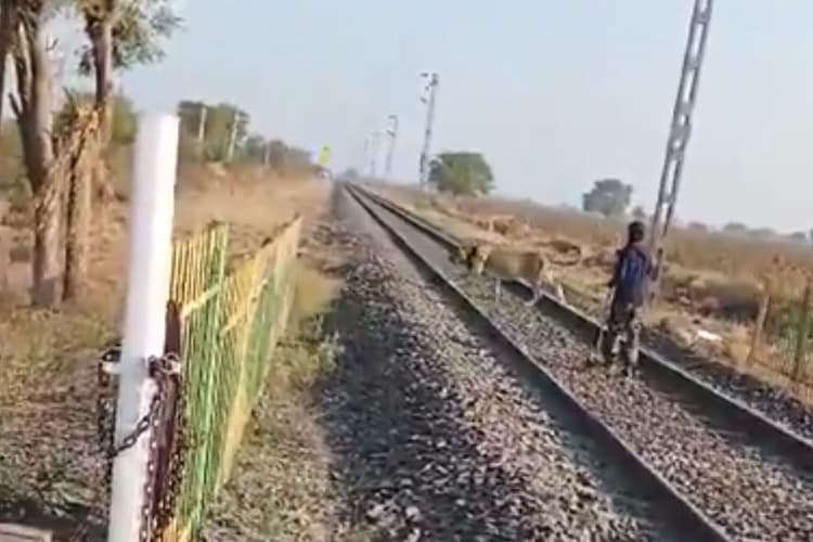 शेर को ट्रैक से भगाने का वीडियो गुजरात के भावनगर रेलवे डिवीजन के लीलीया स्टेशन के करीब का बताया जा रहा है. शेर को भगाता हुआ शख्स कोई और नहीं बल्कि वनकर्मी है.