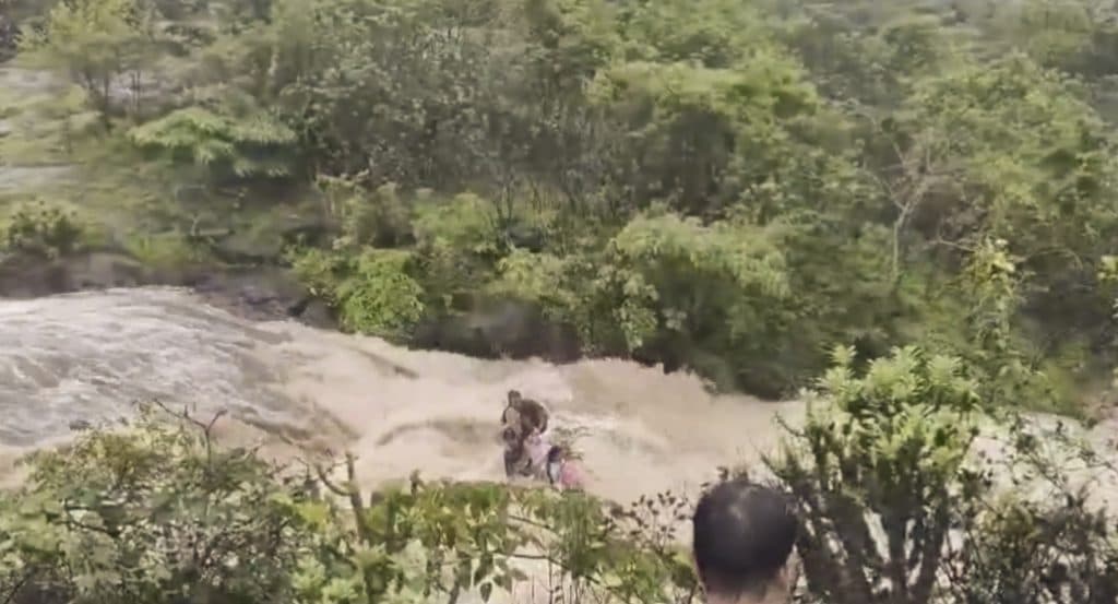 घटना का एक वीडियो सोशल मीडिया पर वायरल हो रहा है. इस वीडियो में नजर आ रहा है कि झरने के पास नौ से 10 लोग एक दूसरे को पकड़े हुए हैं, लेकिन पानी के तेज बहाव के कारण उनकी पकड़ ढीली होती गई. इसके बाद एक महिला, एक लड़की तथा एक लड़का पानी में बह गए.