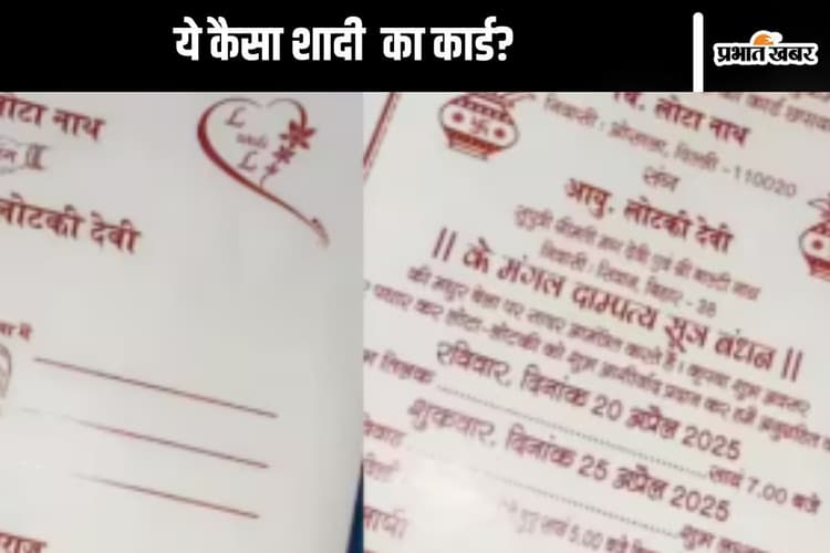 हाल ही में इंस्टाग्राम अकाउंट @amritayd383 पर एक वीडियो शेयर किया गया. इसमें एक शादी का कार्ड दिखाया गया, जिस पर कुछ मजेदार नाम लिखे हुए थे. दूल्हे का नाम लोटा नाथ है, जबकि दुल्हन का नाम लोटकी देवी है. ऐसा लगता है कि यह कार्ड किसी संतोष जी महाराज ने छपवाया है, जो नई दिल्ली के गोविंदपुर मेट्रो स्टेशन के पास रहते हैं, हालांकि उनका कोई सटीक पता नहीं दिया गया है.