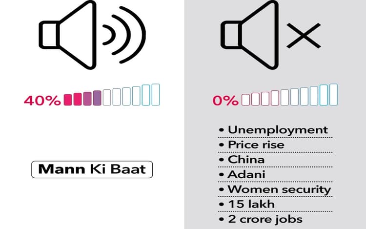 पीएम मोदी के मन की बात को लेकर कांग्रेस ने सरकार पर निशाना साधा है. कांग्रेस ने अपने ट्विटर हैंडल पर एक पोस्ट के जरिए सरकार की निंदा की है. दरअसल, कांग्रेस ने अपने ट्विटर अकाउंट पर दो तस्वीर पोस्ट की है. उन तस्वीर में कांग्रेस ने कटाक्ष करते हुए कहा है कि सरकार मन की बात में लाउड और जन की बात में चुप हो जाता है. कांग्रेस ने देश में महंगाई, बेरोजगारी, अदाणी, चीन, 2 करोड़ जॉब समेत कई मुद्दों को लेकर केन्द्र सरकार पर निशाना साधा है.