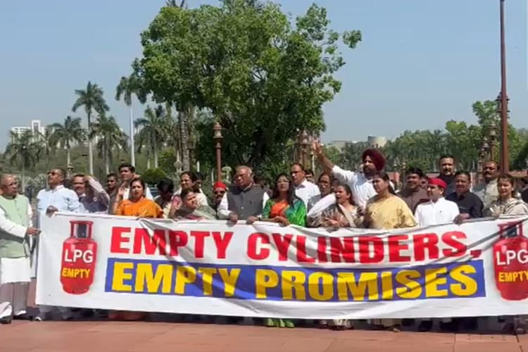 LPG Crisis : विपक्षी सांसदों ने एक बड़ा बैनर ले रखा था जिस पर एम्पिटी सिलेंडर, एम्पिटी प्रॉमिसेस (खाली सिलेंडर, खोखले वादे) लिखा हुआ था. विपक्षी दलों ने मोदी जी, एलपीजी के नारे भी लगाए. विरोध प्रदर्शन में कांग्रेस अध्यक्ष मल्लिकार्जुन खरगे, राष्ट्रवादी कांग्रेस पार्टी (SP) की नेता सुप्रिया सुले, समाजवादी पार्टी के सांसद धर्मेन्द्र यादव और कई अन्य दलों के सांसद इसमें शामिल हुए.