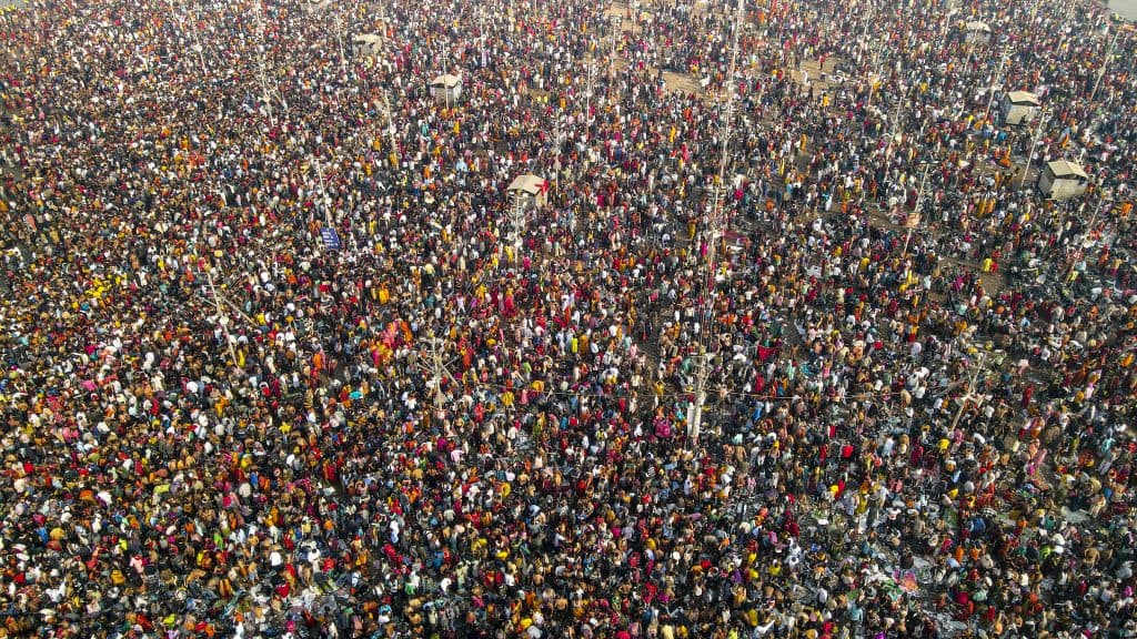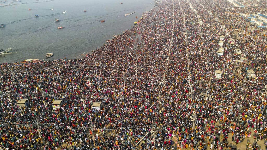 प्रयागराज में भीड़ का क्या आलम है, इसका एक नजारा ड्रोन से ली गई यह तस्वीर पेश कर रही है.