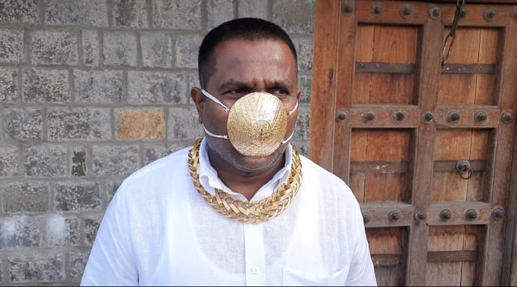 इस दुनिया में हर किसी के अपने शौक होते हैं, हर कोई अपना शौक पूरा भी करता है. पर पुणे के इस शख्स का शौक जानकर आप भी चौंक जायेंगे. जब कोरोना वायरस संक्रमण से बचने के लिए मास्क पहनना अनिवार्य कर दिया गया तब इसने मास्क को भी अपने शौक में शामिल कर लिया. यह शख्स हैं पुणे के गोल्डमैन के रूप में मशहूर शंकर कुराडे, जिन्होंने ने खुद को कोरोना से बचाने के लिए सोना का मास्क बनवाया है. शंकर को सोना पहनने का बहुत शौक है. इसलिए वह हमेशा घर से बाहर तीन किलो सोना पहन कर निकलते हैं. उनके इस शौक के कारण उन्हें गोल्डमैन भी कहा जाता है. शंकर गले में एक सोने की बड़ी चेन, सभी पांच उंगलियों पर सोने की अंगूठी और हाथ में एक बड़ी ब्रेसलेट पहनते हैं.