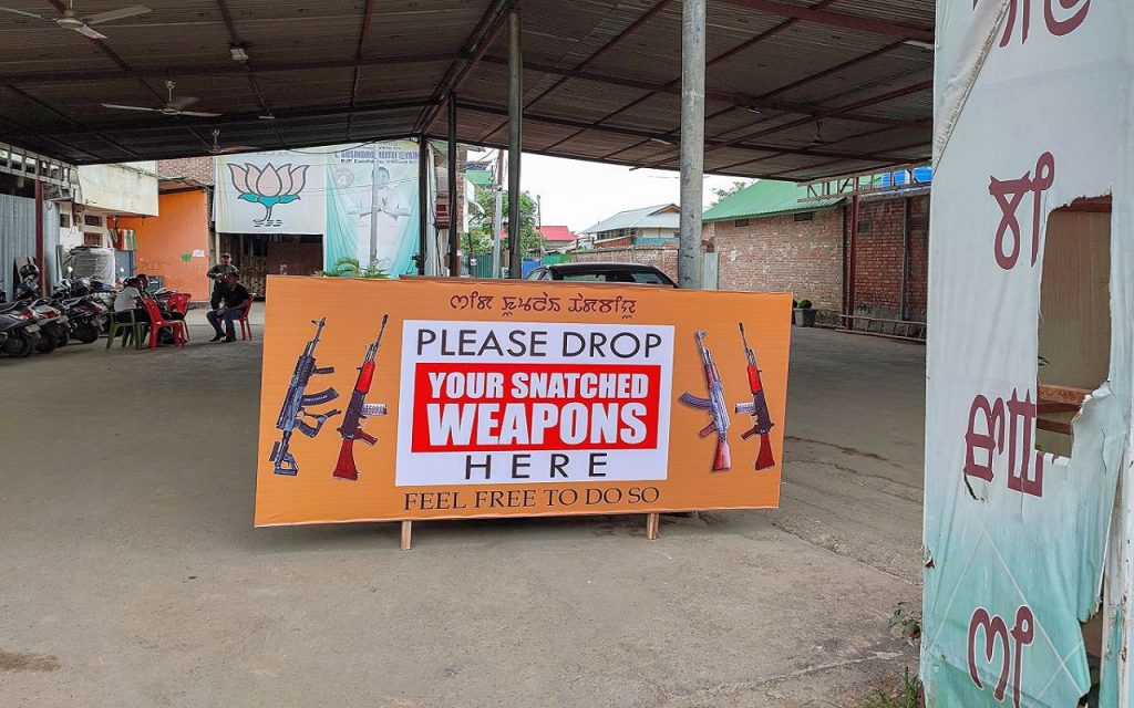 इम्फाल पूर्व से भारतीय जनता पार्टी (भाजपा) के एक विधायक एल सुसिंद्रो मेइती के आवास पर स्थापित एक ‘ड्रॉपबॉक्स’ ने लोगों को आकर्षित किया है और इसमें अत्याधुनिक स्वचालित राइफल समेत 130 हथियार जमा किये गये हैं. इस ‘ड्रॉपबॉक्स’ में हथियार जमा कराने वाले लोगों की पहचान उजागर न हो यह सुनिश्चित किया गया है. सुसिंद्रो के घर के बाहर एक बड़ा पोस्टर लगा है जिसमें अंग्रेजी और मेइती भाषा में लिखा है, ‘‘कृपया छीने गये हथियारों को यहां रखें. ’’इस विज्ञापन के नीचे लिखा है-ऐसा करने में खुद को स्वतंत्र महसूस कीजिए, यह एक संकेत है कि उनसे सवाल नहीं पूछे जाएंगे कि हथियार उन्हें कैसे मिले