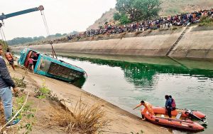 मध्यप्रदेश में बस हादसा, नहर में गिरी बस