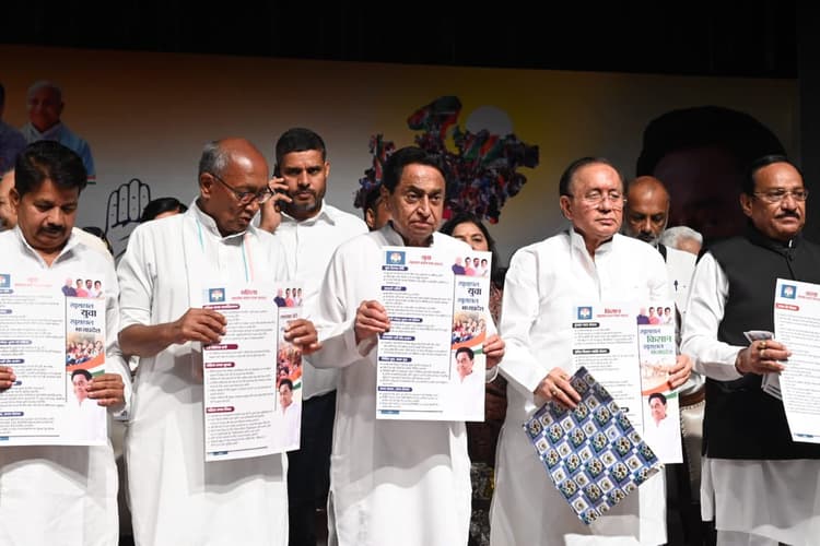 कांग्रेस के अध्यक्ष कमल नाथ ने मंगलवार को राज्य के आगामी विधानसभा चुनावों के लिए पार्टी का घोषणापत्र जारी किया जिसमें प्रदेश के सभी नागरिकों के लिए 25 लाख रुपये का स्वास्थ्य बीमा कवर, अन्य पिछड़ा वर्ग (ओबीसी) के लिए 27 प्रतिशत आरक्षण और राज्य की एक आईपीएल टीम बनाने सहित कई वादे किए गए हैं. कांग्रेस ने अपने 106 पन्नों के घोषणापत्र में 59 वादों को सूचीबद्ध किया है. इसमें किसानों, महिलाओं और सरकारी कर्मचारियों सहित समाज के सभी वर्गों के लिए आश्वासन शामिल हैं. कमल नाथ ने घोषणापत्र जारी करते हुए कहा कि हम सभी लोगों के लिए 25 लाख रुपये का स्वास्थ्य बीमा कवर प्रदान करेंगे, जिसमें 10 लाख रुपये का दुर्घटना कवर भी होगा. उन्होंने दो लाख रुपये तक के कृषि ऋण माफ करने और महिलाओं को 1,500 रुपये प्रति माह की सहायता देने की भी घोषणा की. साथ ही 500 रुपये में एलपीजी सिलेंडर उपलब्ध कराने, स्कूली शिक्षा मुफ्त करने, पुरानी पेंशन योजना लागू करने और युवाओं को दो साल तक 1,500 रुपये से 3,000 रुपये प्रति माह बेरोजगारी भत्ता देने का भी वादा किया.