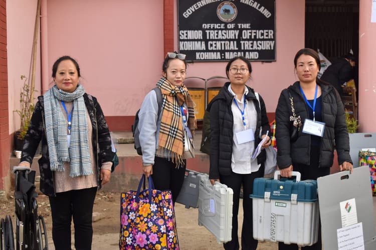 नगालैंड विधानसभा चुनाव के लिए मतदान सोमवार को होन हैं. इसके लिए सुरक्षा के पुख्ता इंतजाम किये गये हैं. प्रदेश के दुर्गम इलाकों के लिए सुरक्षाकर्मियों को भेजा जा रहा है जो लोकतंत्र के इस पर्व को शांति से संपन्न करवाएंगे. आपको बता दें कि राज्य में 13 लाख से अधिक मतदाता हैं तथा 60 सदस्यीय विधानसभा की 59 सीटों के लिए चार महिलाओं एवं 19 निर्दलीय समेत 183 प्रत्याशी चुनाव मैदान में हैं.