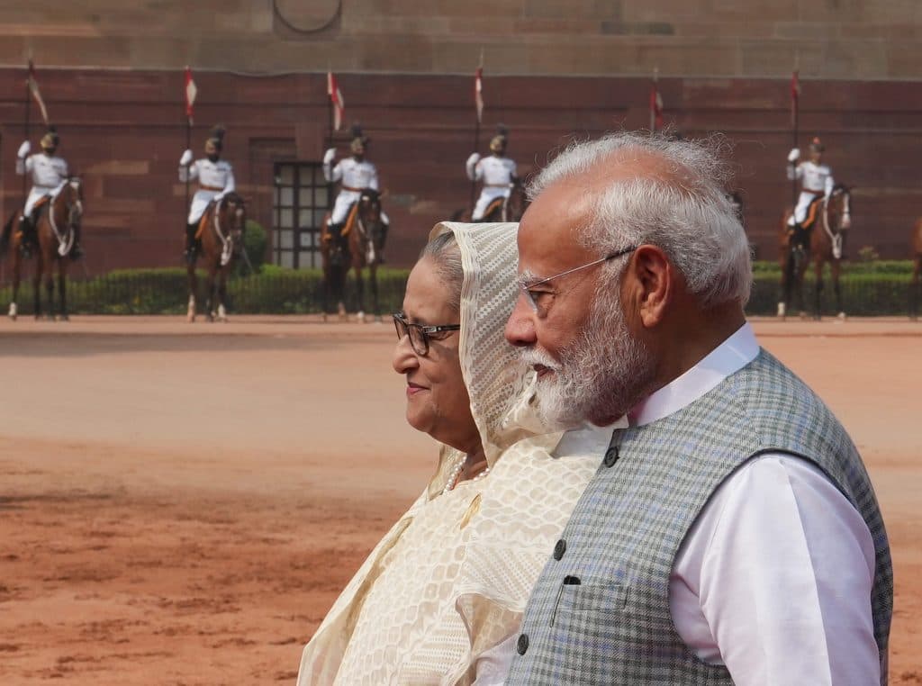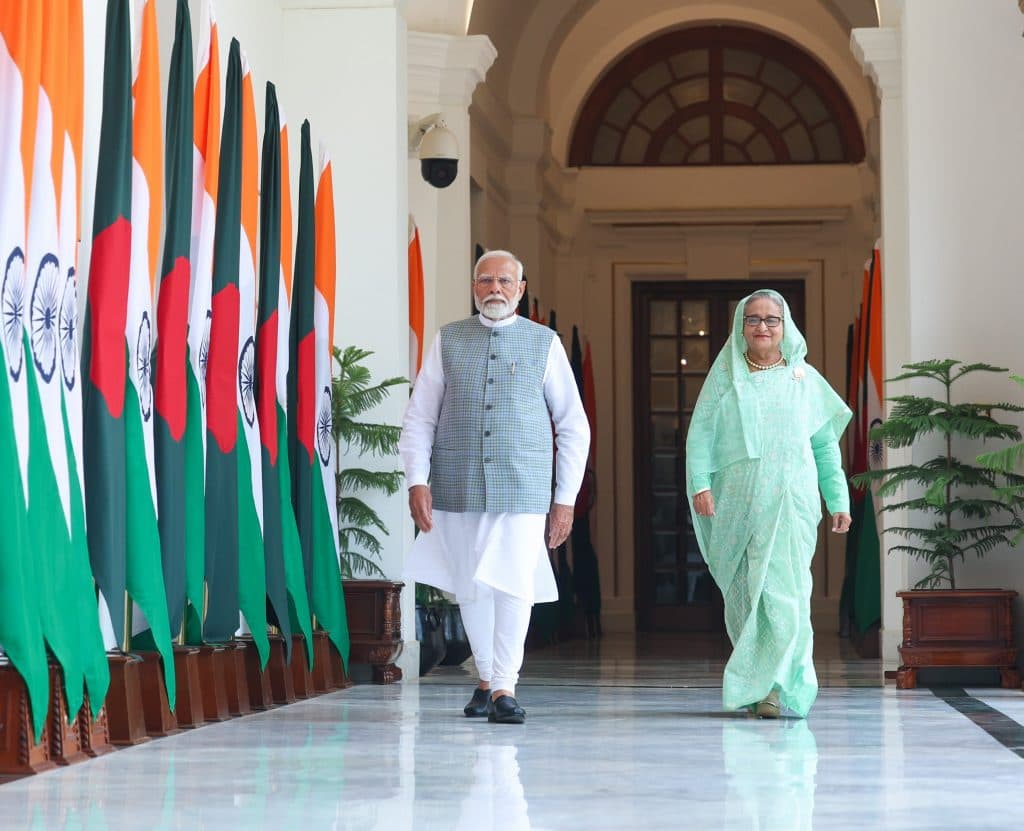 प्रधानमंत्री नरेंद्र मोदी और बांग्लादेश की प्रधानमंत्री शेख हसीना ने दिल्ली के हैदराबाद हाउस में प्रतिनिधिमंडल स्तर की बैठक की. इसके बाद दोनों नेताओं ने संयुक्त प्रेस बयान जारी किया. पीएम मोदी ने कहा कि पिछले एक साल में हम 10 बार मिल चुके हैं, लेकिन आज की मुलाकात खास है. ऐसा इसलिए क्योंकि प्रधानमंत्री शेख हसीना हमारे तीसरे कार्यकाल में हमारी पहली राजकीय अतिथि हैं. उन्होंने कहा कि हम नए विजन के साथ आगे बढ़ेंगे.