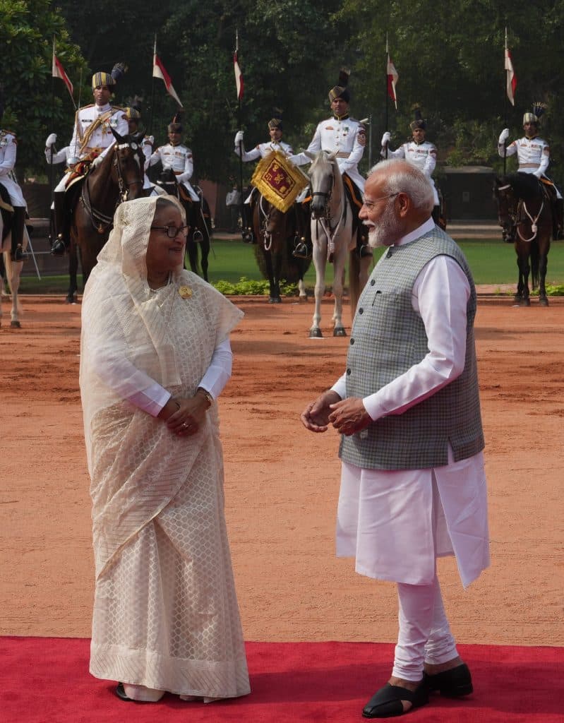 - बांग्लादेश की प्रधानमंत्री हसीना के साथ वार्ता के बाद प्रधानमंत्री मोदी ने कहा कि हमने रक्षा सहयोग बढ़ाने पर व्यापक चर्चा की है.