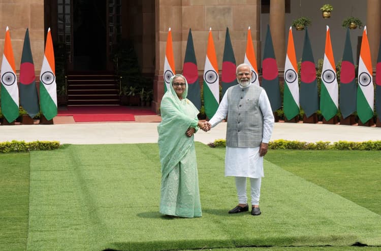 प्रधानमंत्री नरेंद्र मोदी और बांग्लादेश की प्रधानमंत्री शेख हसीना ने दिल्ली के हैदराबाद हाउस में प्रतिनिधिमंडल स्तर की बैठक की. इसके बाद दोनों नेताओं ने संयुक्त प्रेस बयान जारी किया. पीएम मोदी ने कहा कि पिछले एक साल में हम 10 बार मिल चुके हैं, लेकिन आज की मुलाकात खास है. ऐसा इसलिए क्योंकि प्रधानमंत्री शेख हसीना हमारे तीसरे कार्यकाल में हमारी पहली राजकीय अतिथि हैं. उन्होंने कहा कि हम नए विजन के साथ आगे बढ़ेंगे.