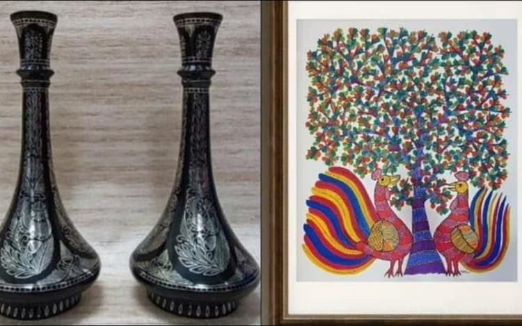 अधिकारियों ने कहा कि गोंड पेंटिंग सबसे लोकप्रिय आदिवासी कलाकृतियों में से एक हैं. उन्होंने कहा कि बिंदुओं एवं रेखाओं द्वारा बनाए गए ये चित्र, गोंड समुदाय की दीवारों और फर्श पर चित्रात्मक कला का एक हिस्सा रहे हैं. प्रधानमंत्री मोदी ने यूनान के प्रधानमंत्री को छत्तीसगढ़ की मशहूर डोरा कलाकृति भेंट की. अधिकारियों ने बताया कि ये भारत के प्रागैतिहासिक काल की एक कला विधा है. इस प्राचीन कला की प्रारंभिक अभिव्यक्तियों में से एक है नाचती हुई लड़की, जिसकी कलाकृति मोहनजो-दारो और हड़प्पा की खुदाई से मिली थी.