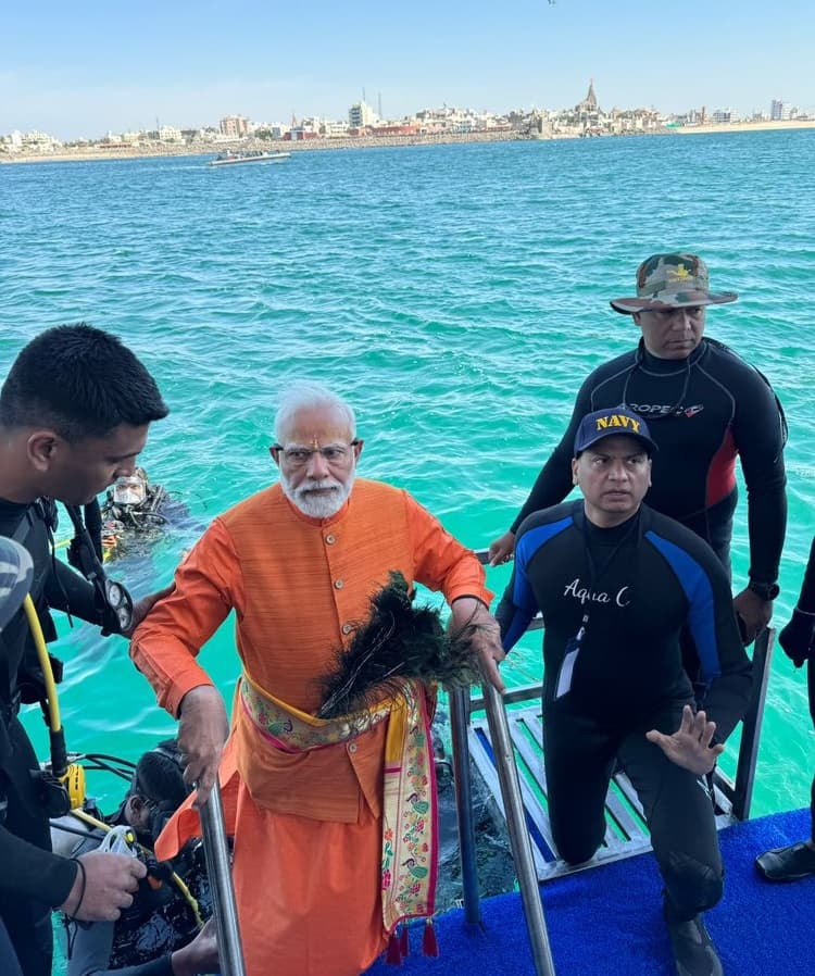 Narendra Modi: पीएम मोदी ने गहरे समुद्र में पानी के अंदर जाकर उस स्थान पर प्रार्थना की जहां जलमग्न द्वारका शहर है.