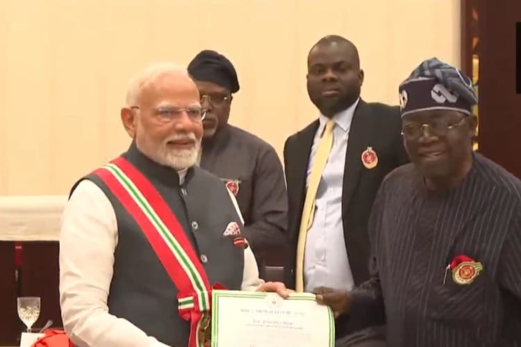 PM Modi: नाइजीरिया ने प्रधानमंत्री नरेंद्र मोदी को देश के दूसरे सर्वोच्च राष्ट्रीय पुरस्कार ‘ग्रैंड कमांडर ऑफ द ऑर्डर ऑफ द नाइजर’ से सम्मानित किया. मोदी ने पुरस्कार ग्रहण करने के बाद कहा, पुरस्कार से सम्मानित किए जाने पर मुझे बहुत गर्व है. मैं इसे बहुत विनम्रता से स्वीकार करता हूं और भारत के लोगों को समर्पित करता हूं. यह किसी देश द्वारा मोदी को दिया गया 17वां अंतरराष्ट्रीय पुरस्कार है.