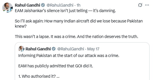 Operation Sindoor : हमने कितने विमान खो दिए? राहुल गांधी ने फिर पूछा विदेश मंत्री से