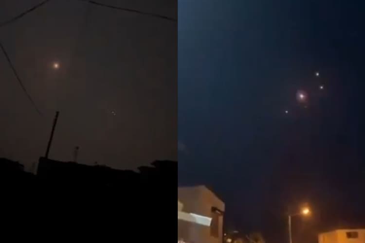 जैसलमेर में भारतीय वायु रक्षा द्वारा पाकिस्तानी ड्रोन को रोका गया. विस्फोटों की आवाज़ सुनी जा सकती है, और आसमान में चमकती हुई रोशनी देखी जा सकती है.