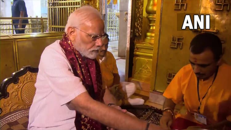 गुजरात पहुंचे प्रधानमंत्री नरेंद्र मोदी ने बनासकांठा में अंबाजी मंदिर के दर्शन किए. उन्होंने अंबाजी मंदिर पहुंचकर पूजा-अर्चना की. उन्होंने कहा कि नवरात्रि के दौरान अंबाजी में होना सौभाग्य है. यहां शुरू की जा रही परियोजनाओं का यहां के क्षेत्र पर काफी प्रभाव पड़ेगा. उन्होंने कहा कि आज इन 45,000 घरों का लोकार्पण हुआ, इसके सभी लाभार्थियों को मेरी शुभकामनाएं. इस बार ऐसे समय में यहां आया हूं, जब विकसित भारत का विराट संकल्प देश ने लिया है.