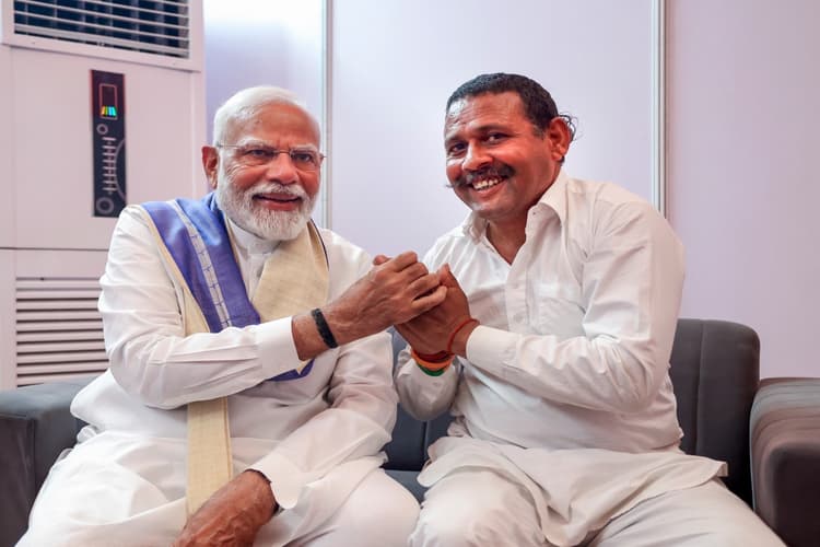 PM Modi Meets Rampal Kashyap: कैथल के ‘राम’ का 14 साल के बाद ‘वनवास’ खत्म हो गया है. सोमवार को खुद प्रधानमंत्री नरेंद्र मोदी ने जूते पहनाकर उनका प्रण तुड़वाया. पीएम मोदी ने हरियाणा के यमुनानगर में रामपाल कश्यप को खुद अपने हाथों से जूते पहनाए. पीएम मोदी ने खास पल का एक वीडियो भी सोशल मीडिया प्लेटफॉर्म एक्स पर शेयर किया है. सोमवार (14 अप्रैल) को प्रधानमंत्री नरेंद्र मोदी अंबेडकर जयंती के मौके पर हरियाणा के यमुनानगर पहुंचे थे. यहां पीएम मोदी ने एक जनसभा को संबोधित किया. साथ ही कई विकास परियोजनाओं का उद्घाटन और शिलान्यास भी किया. इसके बाद पीएम मोदी ने रामपाल कश्यप को जूते पहनाए.