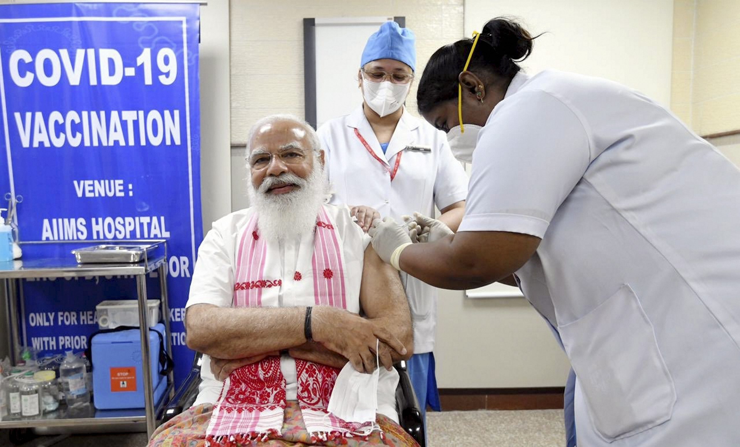 प्रधानमंत्री नरेंद्र मोदी ने एम्स में ली कोरोना वैक्सीन की पहली डोज