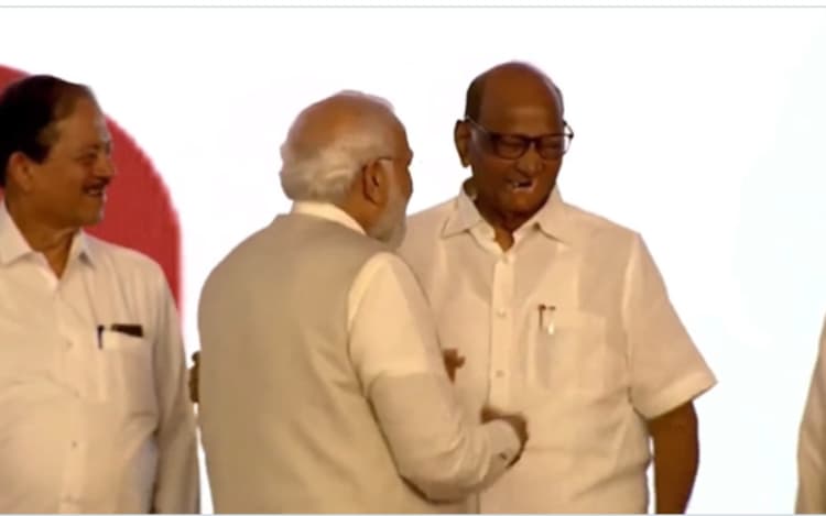 इस पूरे कार्यक्रम का वीडियो सामने आया है जिसमे नजर आ रहा है कि पीएम मोदी ने मंच पर पहुंचने के बाद लोगों को अभिवादन किया. इस दौरान वे एनसीपी प्रमुख शरद पवार के पास भी पहुंचे. दोनों नेताओं के बीच कुछ हंसी ठिठोली हुई. इसके बाद पवार ने पीएम मोदी की पीठ ठोकी और हंसकर उनसे बाद करते नजर आये. इस मंच पर पीएम मोदी और शरद पवार के अलावा अजीत पवार और सीएम एकनाथ शिंदे के साथ अन्य नेता भी थे. आप भी देखें ये वीडियो