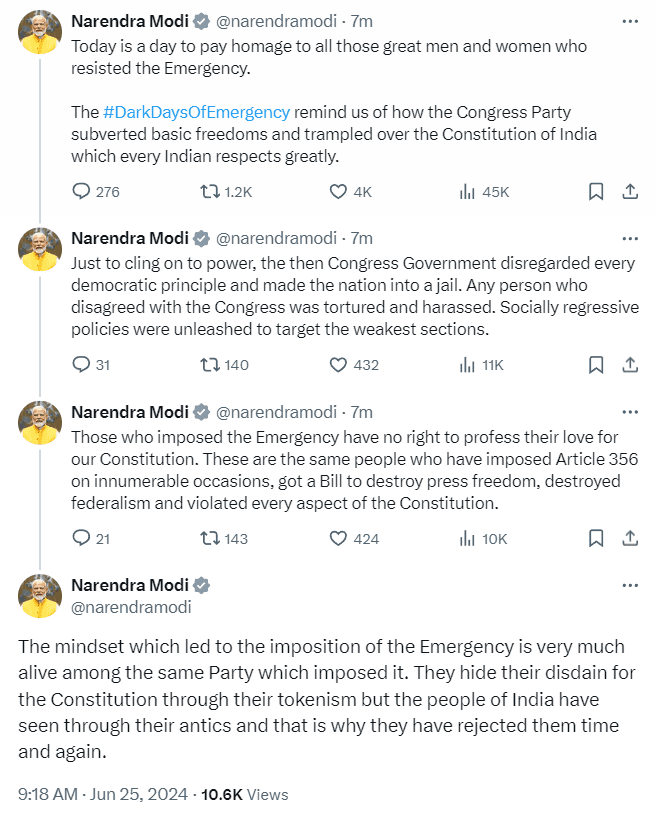 'भारत के संविधान को रौंदा गया', पीएम मोदी ने इमरजेंसी के दिनों को याद करते हुए कहा