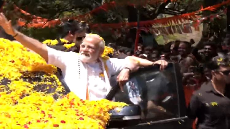 मांड्या में नरेंद्र मोदी के 1.8 किलोमीटर लंबे रोड शो के लिए पूरे रास्ते को भगवा रंग से सजाया गया. पूरे रास्ते पर बीजेपी के झंडे, पोस्टर और बैनर लगाए गए थे. अपनी कार के रनिंग बोर्ड पर खड़े होकर प्रधानमंत्री मोदी ने सड़कों और आसपास की इमारतों पर खड़े लोगों का हाथ हिलाकर अभिवादन किया. भीड़ में शामिल लोगों को मोदी-मोदी के नारे लगाते देखा गया.