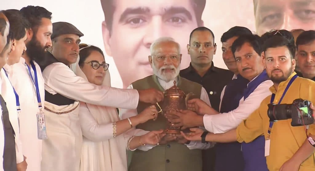 -प्रधानमंत्री ने कहा आज दुनिया देख रही है कि कैसे जम्मू-कश्मीर के लोग भारत के लोकतंत्र को मजबूत कर रहे हैं और मैं इसके लिए जम्मू-कश्मीर के लोगों को बधाई देता हूं. कुछ दिन पहले, जब मैं जम्मू-कश्मीर आया था, तो मैंने कहा था कि तीन परिवार जम्मू-कश्मीर के विनाश के लिए जिम्मेदार हैं और तब से ये लोग घबराए हुए हैं, दिल्ली से लेकर जम्मू-कश्मीर तक, इन तीन परिवारों को लगता है कि कोई उनसे सवाल कैसे कर सकता है.