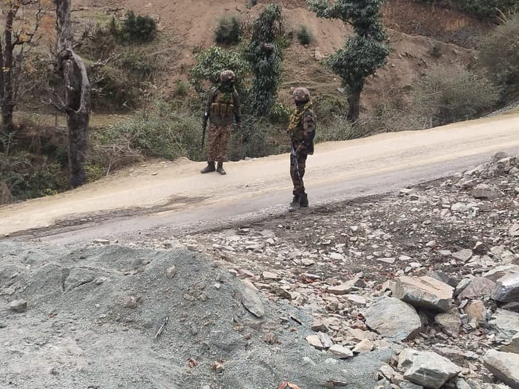 जम्मू-कश्मीर के पुंछ जिले में गुरुवार को हथियारों से लैस आतंकवादियों द्वारा सेना के दो वाहनों पर घात लगाकर किए गए हमले में पांच सैनिक शहीद हो गये थे. इस हमले में दो अन्य घायल भी हुए जिनका इलाज अस्पताल में जारी है. इस बीच सुरक्षा बलों ने इलाके के वन क्षेत्र में व्यापक घेराबंदी और तलाशी अभियान शुरू किया जो शनिवार को भी जारी है. राष्ट्रीय अन्वेषण अभिकरण (एनआईए) की एक टीम ने वहां का दौरा भी किया है. इधर खबर है कि पुंछ जिले में हमलास्थल के निकट शुक्रवार को तीन लोग संदिग्ध परिस्थितियों में पाये गये हैं जो मृत हैं.