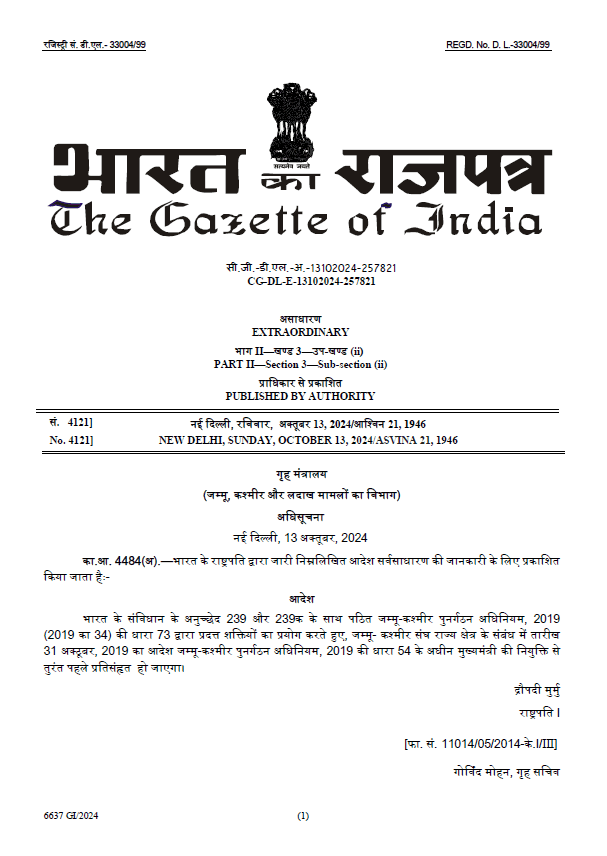 Jammu and Kashmir: केंद्रीय गृह मंत्रालय ने जम्मू-कश्मीर से राष्ट्रपति शासन हटाने की घोषणा की है, जिससे प्रदेश में नए मुख्यमंत्री की नियुक्ति का मार्ग प्रशस्त हो गया है. गृह मंत्रालय द्वारा रविवार देर रात जारी बयान में बताया गया कि 31 अक्टूबर 2019 को जारी आदेश अब निरस्त कर दिया जाएगा, जो जम्मू-कश्मीर के केंद्र शासित प्रदेश बनने के बाद से लागू था.इस आदेश के तहत अब प्रदेश में नए नियम लागू होंगे, जो जम्मू और कश्मीर पुनर्गठन अधिनियम, 2019 की धारा 54 के अंतर्गत मुख्यमंत्री की नियुक्ति से पहले प्रभावी होंगे.