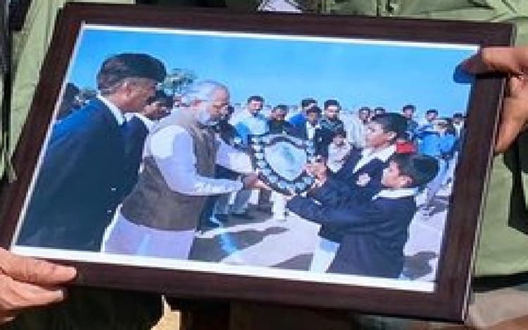 PM Modi in Kargil/diwali 2022 : प्रधानमंत्री नरेंद्र मोदी इस बार दिवाली मनाने लद्दाख के करगिल पहुंचे. यहां उन्होंने जवानों के साथ बातचीत की और उनका उत्साह बढ़ाया. इस दौरान प्रधानमंत्री की मुलाकात एक ऐसे जवान से हुई जो पहले भी उनसे मिल चुका था, वो भी बचपन में. दरअसल, पीएम मोदी और उक्त जवान की मुलाकात साल 2021 में हुई थी. जब आज जवान की मुलाकात प्रधानमंत्री से हुई तो उसने अपनी पुरानी याद ताजा की और पीएम मोदी को कवर करवाकर उस वक्त की तस्वीर दी.