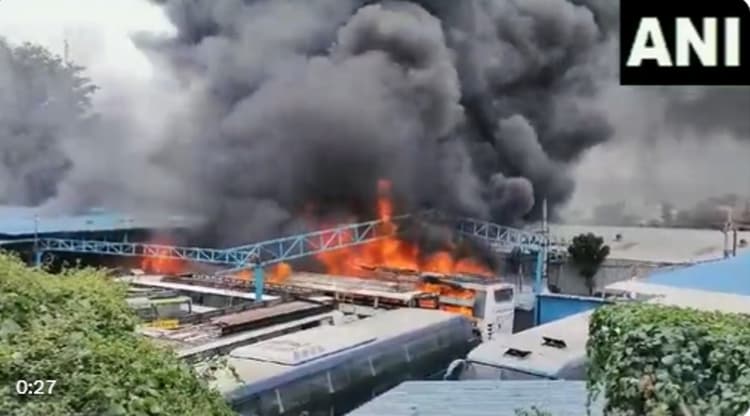 बेंगलुरु के वीरभद्रनगर में बस डिपो में खड़ी निजी बसों में भीषण आग लग गई. दमकल विभाग के एक अधिकारी ने कहा कि एक गराज में खड़ी बस में आग लग गई. देखें वीडियो