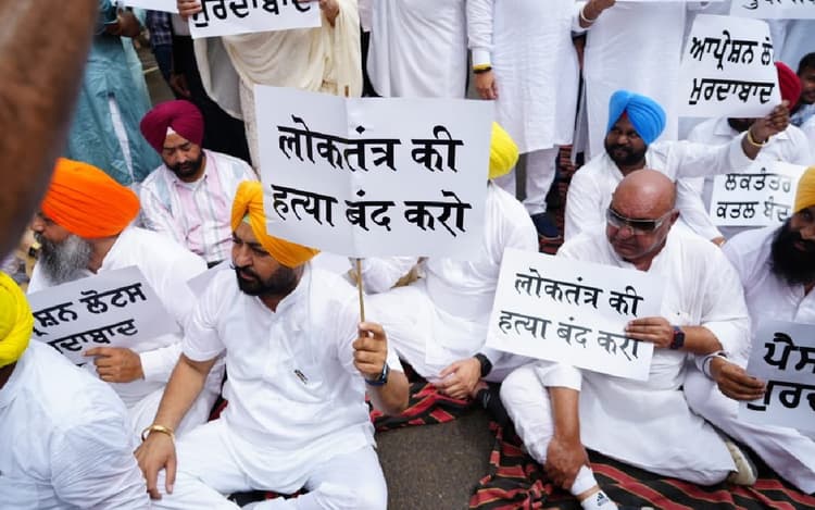 आम आदमी पार्टी (आप) के विधायकों ने पंजाब विधानसभा का विशेष सत्र आहूत करने का फैसला वापस लिए जाने के विरोध में गुरुवार को मार्च निकाला. विधायक लोकतंत्र की हत्या बंद करो और ऑपरेशन लोटस मुर्दाबाद जैसे नारे वाली तख्तियां हाथ में लिए हुए थे. पार्टी ने कांग्रेस और भारतीय जनता पार्टी पर एक साथ मिले होने तथा राज्य में विधानसभा का विशेष सत्र नहीं होने देने के लिए मिल कर काम करने का आरोप लगाया. वहीं, विधायकों को राज्यपाल के आवास की ओर बढ़ने से रोक दिया गया.