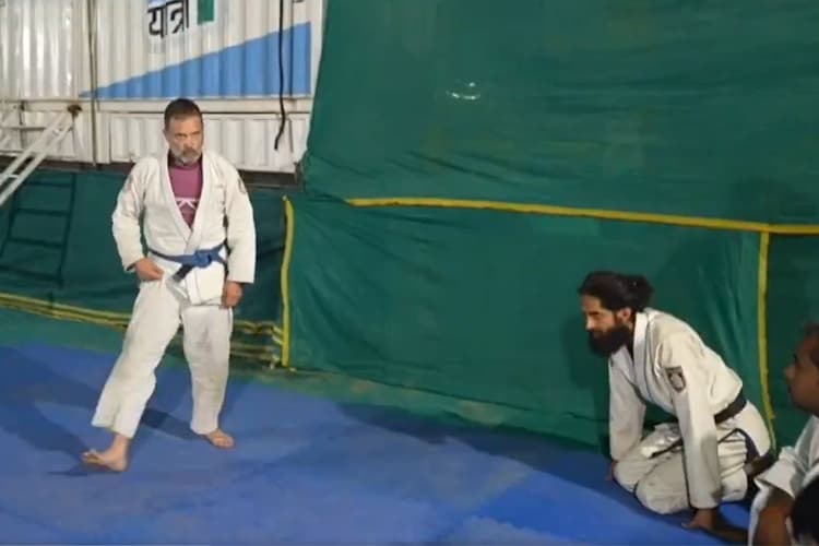 Rahul Gandhi: कांग्रेस सांसद राहुल गांधी ने अपने सोशल मीडिया एक्स पर एक वीडियो शेयर किया, जिसमें कांग्रेस नेता एक अलग अवतार में नजर आ रहे हैं. नेशनल स्पोर्ट्स डे पर राहुल गांधी ने जो वीडियो शेयर किया है, उसमें वो मार्शल आर्ट की ट्रेनिंग देते दिख रहे हैं. वीडियो में राहुल गांधी बच्चों को जिउ-जित्सु की प्रैक्टिस कराते दिख रहे हैं. वीडियो के साथ ही राहुल गांधी ने डोजो यात्रा का भी ऐलान कर दिया.