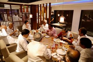 राहुल गांधी ने तस्वीर शेयर की है उसमें शिवसेना नेता संजय राउत राजद सांसद मनोज झा सहित कई नेता नाश्ते के टेबल पर नजर आ रहे हैं. कुछ नेता तो राहुल गांधी के साथ बातचीत करते दिख रहे हैं और कुछ नश्ते के प्लेट में परोसी गई चीजों का आनंद ले रहे हैं. नाश्ते के प्लेट में छोले-भटूरे नजर आ रहे हैं. आमंत्रित नेताओं को पानी तांबे के गिलास में दिये गये.