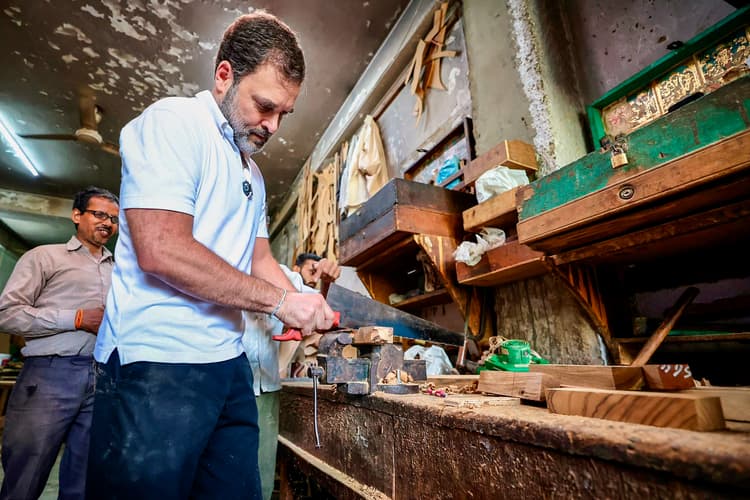 राहुल गांधी की इस मुलाकात की तस्वीरें ‘एक्स’ सहित कई अन्य सोशल मीडिया प्लेटफार्म पर शेयर की गई. इन तस्वीरों में वह लकड़ी के कारीगरों से मुलाकात के साथ उनके औजार भी इस्तेमाल करते देखे जा सकते हैं. तस्वीर में नजर आ रहा है कि राहुल गांधी कारीगरों से उनका हर हाल जानना चाहते हैं.