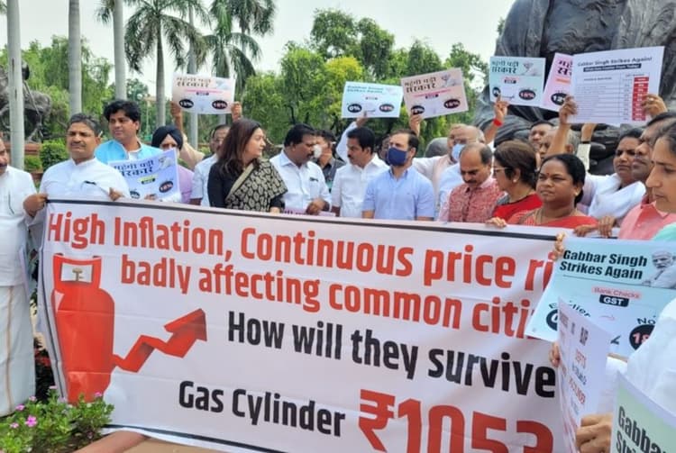 Parliament Monsoon Session: मानसून सत्र का आज दूसरा दिन है. ऐसे में विपक्ष सरकार को महंगाई, जीएसटी दर सहित कई अन्य मुद्दों पर घेरने के लिए पूरी तरह तैयार है. इसको लेकर कांग्रेस सांसदों ने गांधी प्रतिमा के पास महंगाई के खिलाफ विरोध-प्रदर्शन किया. इस प्रदर्शन में कांग्रेस नेता राहुल गांधी भी शामिल हुए. भारतीय युवा कांग्रेस के श्रीनिवास बीवी की ओर से ट्वीट किए गए एक वीडियो में राहुल गांधी सहित विपक्षी नेताओं को एक बड़ा बैनर पकड़े हुए देखा गया. इस बैनर में लिखा है, “उच्च मुद्रास्फीति, निरंतर मूल्य वृद्धि आम नागरिकों को बुरी तरह प्रभावित कर रही है.”